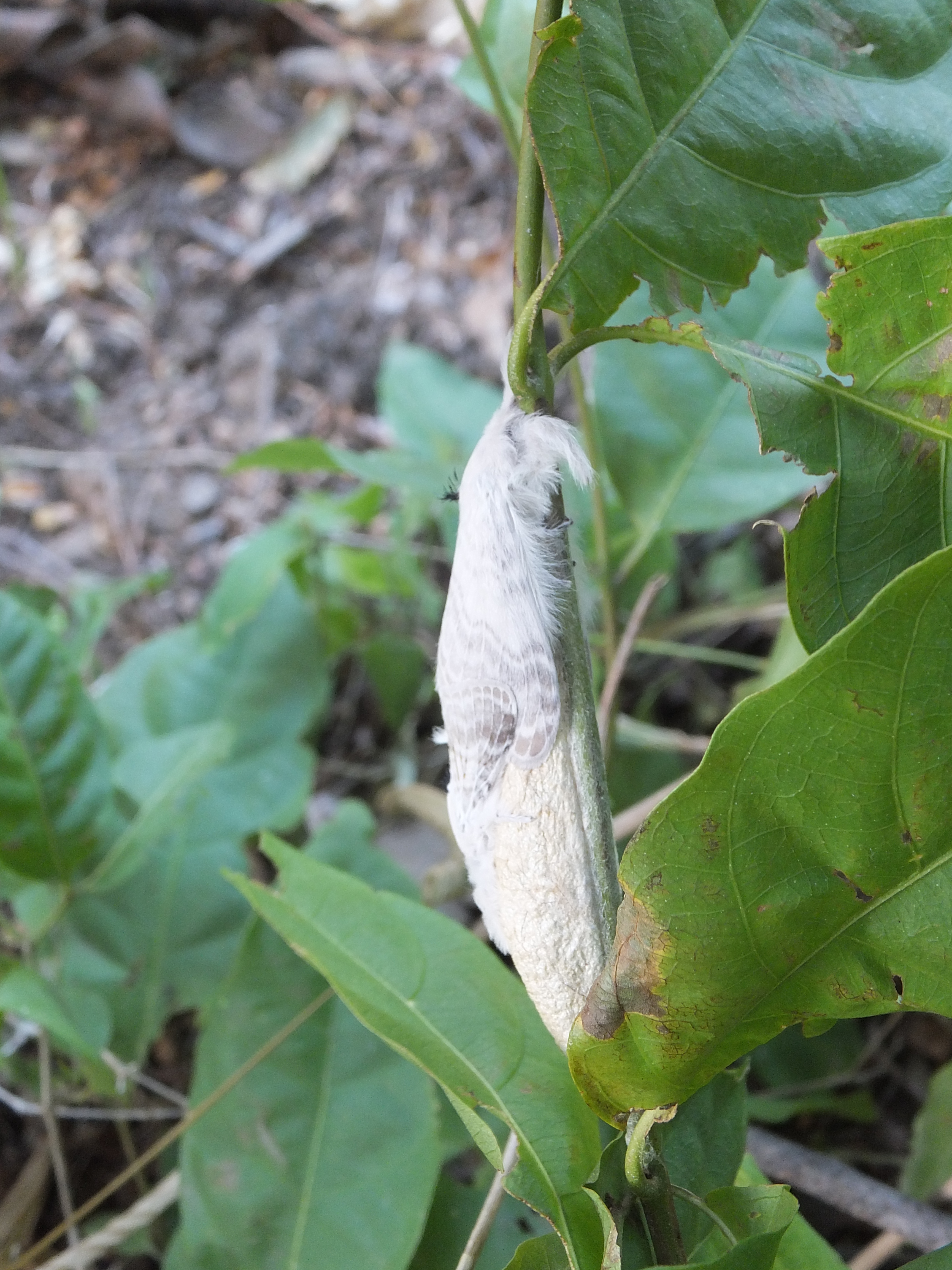 I went to pick it up, to see if its legs and body were as soft as they looked, but found that the moth was otherwise engaged. Part of the white mass was actually another moth, and they were in the middle of mating.